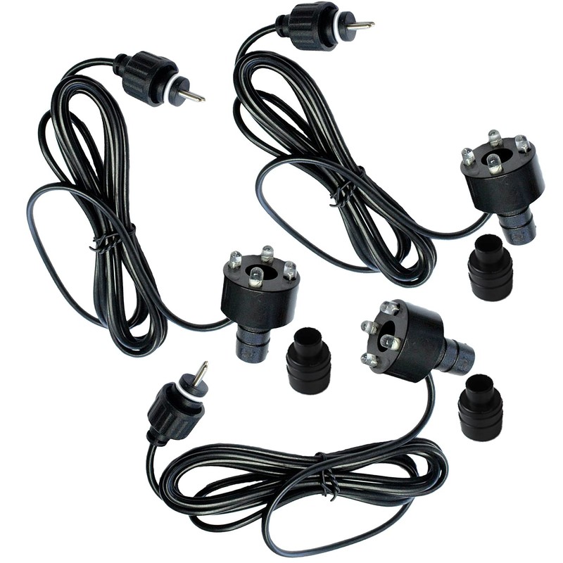 Set of 3 LED source stone lighting, warm white, 12 V AC, replacement lighting for fountains and water features, without power supply, 2 m cable, double pin standard plug, including 1/2 inch and 3/4