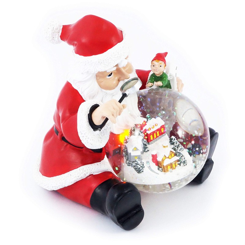 - Beautiful and detailed Santa Claus with a snow globe in your lap.