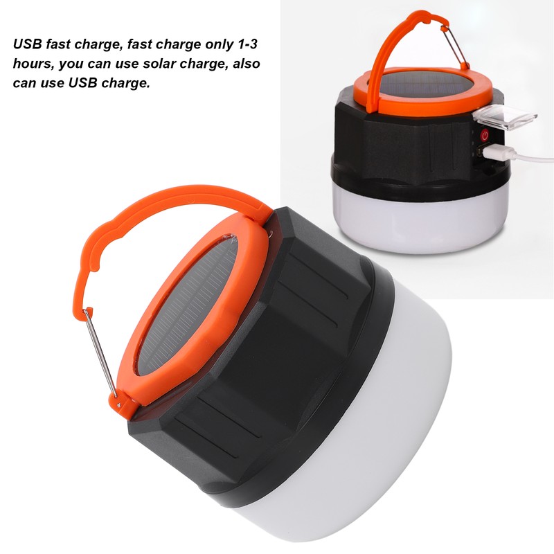 1、Polysilicon Solar Panels: Using polysilicon solar panels, where there is sun, there is electricity, providing a continuous supply of electricity. 2、Solar Charge and USB Charge: USB fast charge, fast charge only 1‑3 hours, you can use solar charge, also can use USB charge. It can charge your mobile phone without worrying about running out of battery. It is not only a lamp, but also a power bank. 3、Diverse Features: USB charging, remote control, solar charging, intelligent electric display, super floodlight, super long life. IPX4 waterproof, independent module, circuit insulation protection design. 4、3 Gears of Dimming: 3 gears of dimming, including strong light, low light and flash, can be used button dimming, or remote dimming. Built in 2400mAh battery, 200‑250lm, suitable for night market stalls, outdoor camping, power failure emergency and other scenarios. 5、High Brightness LED: High brightness LED, brightness up to 300W, with high permeability PC lampshade, 360° omnidirectional light. Universal hook, no installation, can be hung at any time when using, drop to hide when no hook is needed.