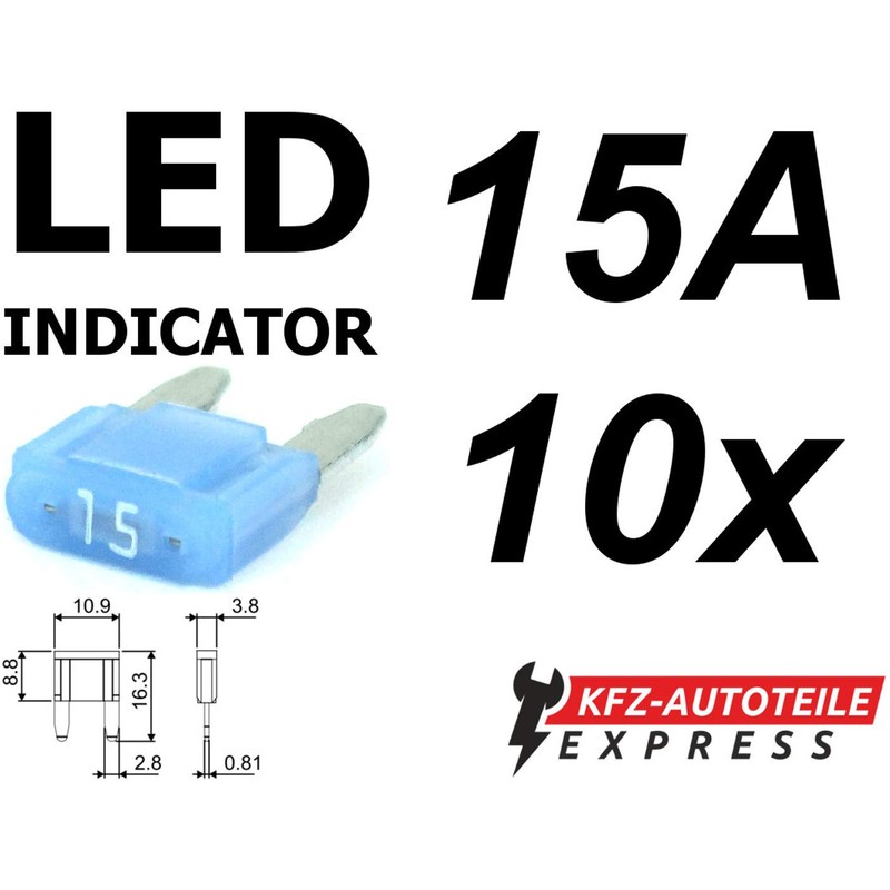LED Status Mini Car Fuses Blade Fuses TFNL0 Set 3A 5A 7.5A 10A 15A 20A 25A 30A, Current: 15A Amp