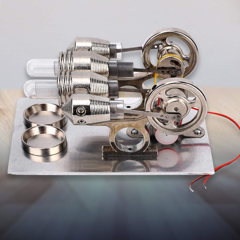 LED Stirling Engine 4 Cylinder Stirling Engine Miniature Hot Air Power Generator Physics Lab Teaching Model