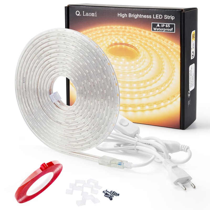 LED Strip, 4 m, with Switch and Plug, 230 V 5050 SMD, IP65 Light Strip, Warm White