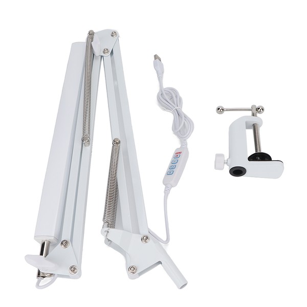 1、[EYE PROTECTION] This beauty eyelashes table lamp has 30 LED eye protection wicks, low power, low power consumption, no video flash, reducing the burden on eyes. 2、[NATURAL LIGHT] The LED student desk lamp has a large light source area, the light is evenly distributed on the entire desktop, there is no dark area, no screen flicker, and it is soft and does not hurt the eyes. 3、[ADJUSTABLE] The LED swing arm lamp has three color temperatures, 10 levels of brightness adjustable, color temperature 3500‑6000K, and a service life of up to 2000 hours. 4、[USB INTERFACE] The LED swing arm desk lamp can be connected to power supply, mobile power supply, and charging plug, which is more convenient to use. 5、[HUMANIZED DESIGN] The lamp tube of the table lamp can be folded and bent 360°, and can be illuminated in multiple ranges and angles. The clip with a maximum range of 6.5cm can be clipped on books, desks, walls, etc. 6、[WIDE RANGE OF USES] The folding table lamp has a clamp, which can be used in scenes such as study, office, tattoo, tattoo, eyelash extension, manicure and so on.