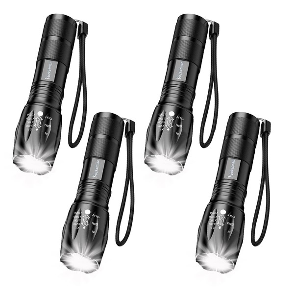 LED Tactical Flashlight, Super Bright 2000 Lumen LED Flashlights Portable Outdoor Water Resistant Torch Light Zoomable Flashlight with 5 Light Modes (4 Pack)