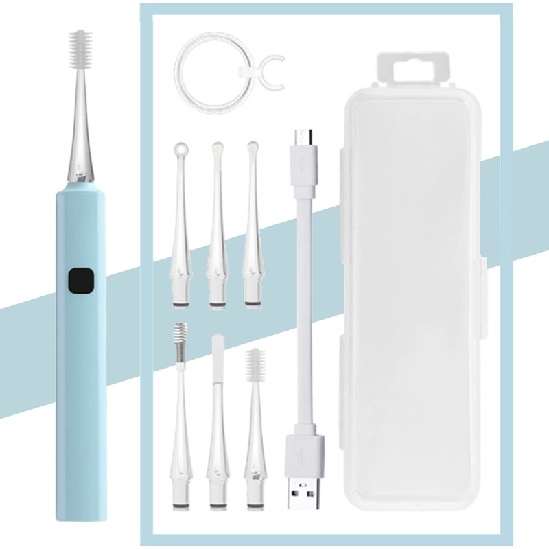 耳かき ライト 光る耳かき LEDライト付き耳かき USB充電式 光る耳かき ルーペ 耳掃除 、マルチスタイルの交換可能なイヤーチップ 耳掃除 光る耳かき 子供用 お年寄り用 家庭用 耳かき ライト イヤークリーナー 収納付き 携帯便利 (青)