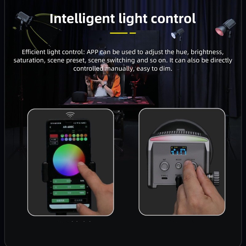 2. Intuitive Control with App Connectivity: Equipped with a control dial and large LCD screen, the LED continuous light allows precise adjustments. Connect wirelessly via an app to sync with other models, unlocking advanced effects and OTA firmware upgrades through Bluetooth.