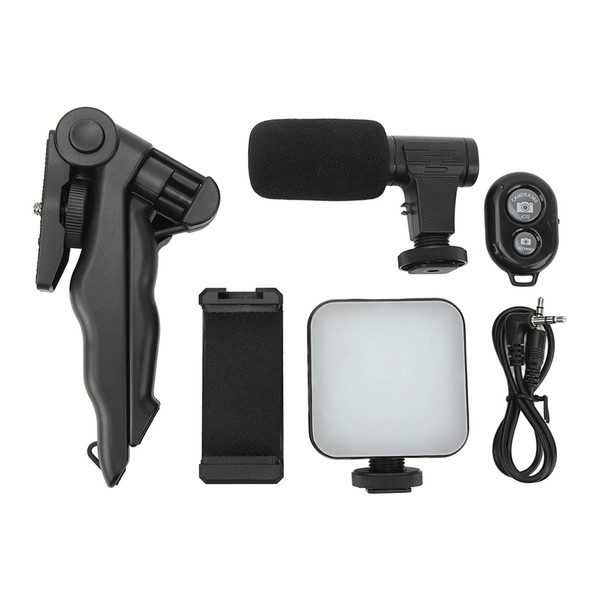 1、Microphone: Wide heart shaped pickup range and powerful noise reduction technology in the microphone, along with microphone capsules for better recording. 2、LED Light: 49 lamp beads providing 6500K color temperature light and 5W output power, powered by 2 x AA batteries (not included in the package), offering brighter and more uniform video illumination. 3、Universal Phone Clamp: Fixed range of the phone holder is approximately 5.4‑8.3 cm, widely compatible with most smartphones. The top cold shoe mount allows for quick installation of the microphone and LED light. 4、Dual Use Tripod Handle: Designed with a foldable panel, the tripod serves as both a handheld and tabletop application. Its ergonomic shape ensures a comfortable grip. 5、Wide Application: This kit is specifically designed for recording smartphone videos with a 3.5mm TRRS jack, suitable for video blogging, interviews, live streaming, online makeup tutorials, video chats, and more.