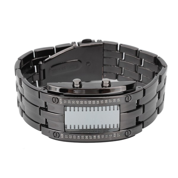 LED Watch Unique Binary Time Mode Display Convex Arc Structure Waterproof LED Wrist Watch Electronic Watch Black L