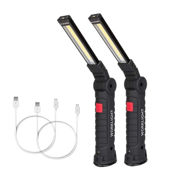 LED Work Light Rechargeable, OTYTY COB Portable Work Lights with Magnetic Base, 5 Modes, Hanging Hook and Water-Resistant Super Bright LED Flashlight Lamp for Car Repair, Emergency Use (2 Pack Large)