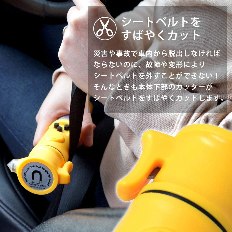 脱出ハンマー レスキューハンマー 車載用防災LEDライト 非常灯 サイレン シートベルトカッター ガラスハンマー イエロー[XL912Y]…