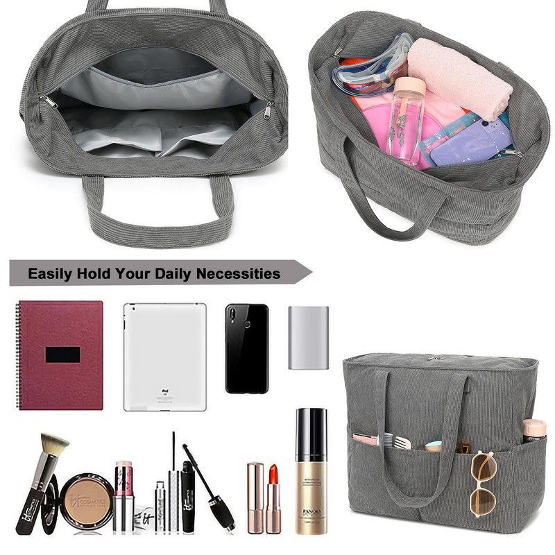 LEDAOU Large Beach Bag with Zip Women's Waterproof Shoulder Bag Tote Bag Shopper Sandproof with Zip Pool Fitness Travel Bag Family, Corduroy Grey T