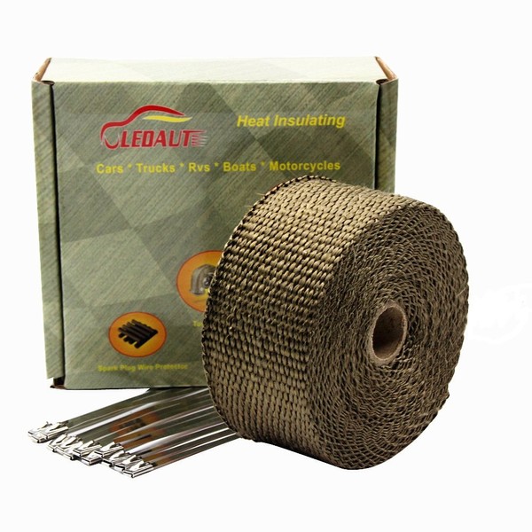 LEDAUT 2" x 25' Titanium Exhaust Header Wrap for Motorcycle Exhaust Tape with Stainless Ties