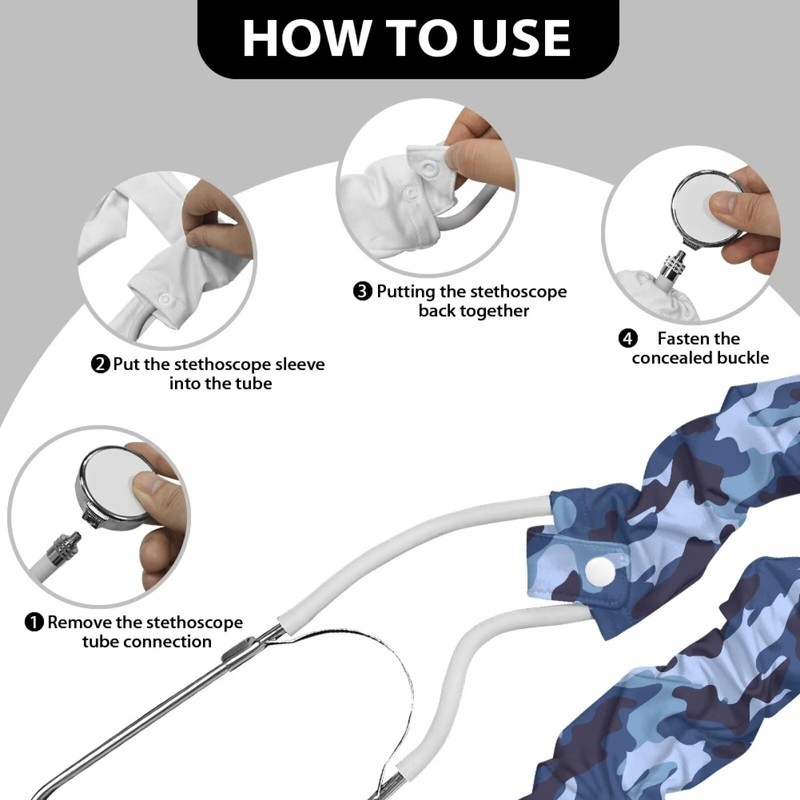 - HOW TO USE: Frist, Remove the stethoscope tube connection; Second, Put the stethoscope sleeve into the tube; Thired, Putting the stethascope back together; Fourth, Fasten the concealed buckle