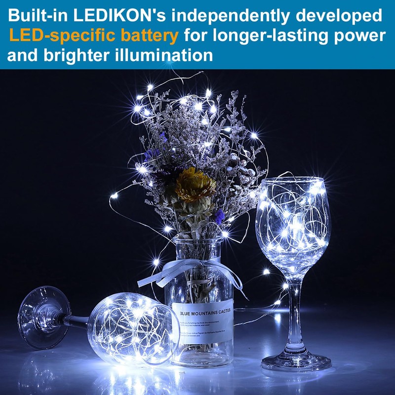 - 【Vibrant and bright white LEDs】LEDIKON mini fairy lights are made of 7.2ft copper wire(silver coated) with 20pcs vibrant and high bright micro leds,which is flexible strong and durable