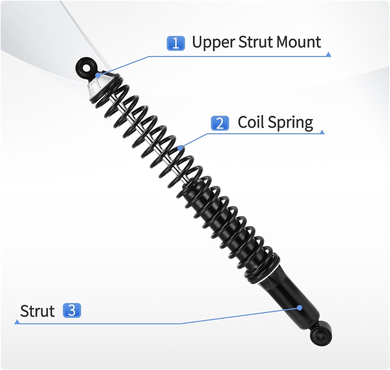 ② Meets OE specification: Complete Struts Assembly which include struts, coil springs, strut mount, boot, bumper kit, spring seat and isolator, All of those components are manufactured to meet or exceed the OE performance.