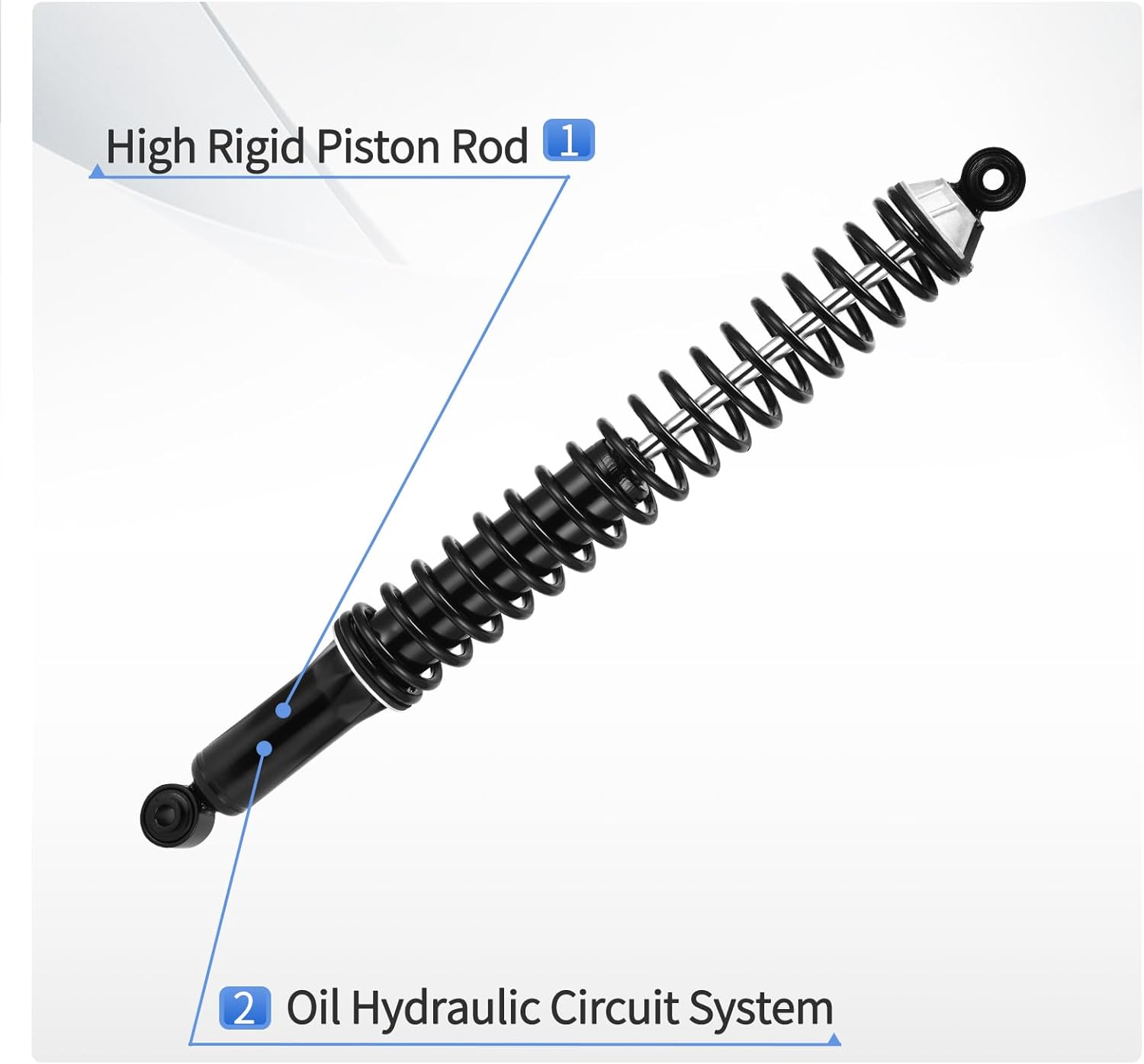 ① Features: Oil Seal, Gloss Black, High Strength Steel Springs, Neoprene Dust Boot is included.