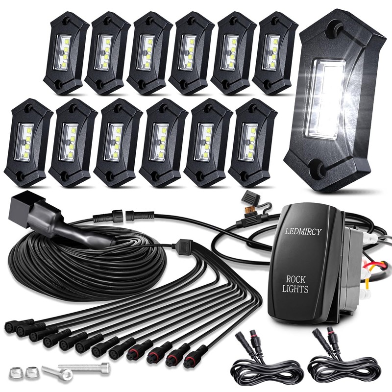 LEDMIRCY R3 Pure White Rock Lights Kit with Rocker Switch Wire Harness 12PCS LED Rock Lights White for Jeep Offroad Trucks ATV UTV SUV Underglow Lights High Power Trail Rig Lights Under Body