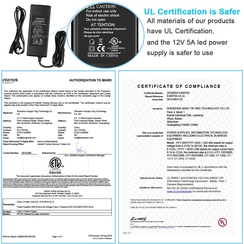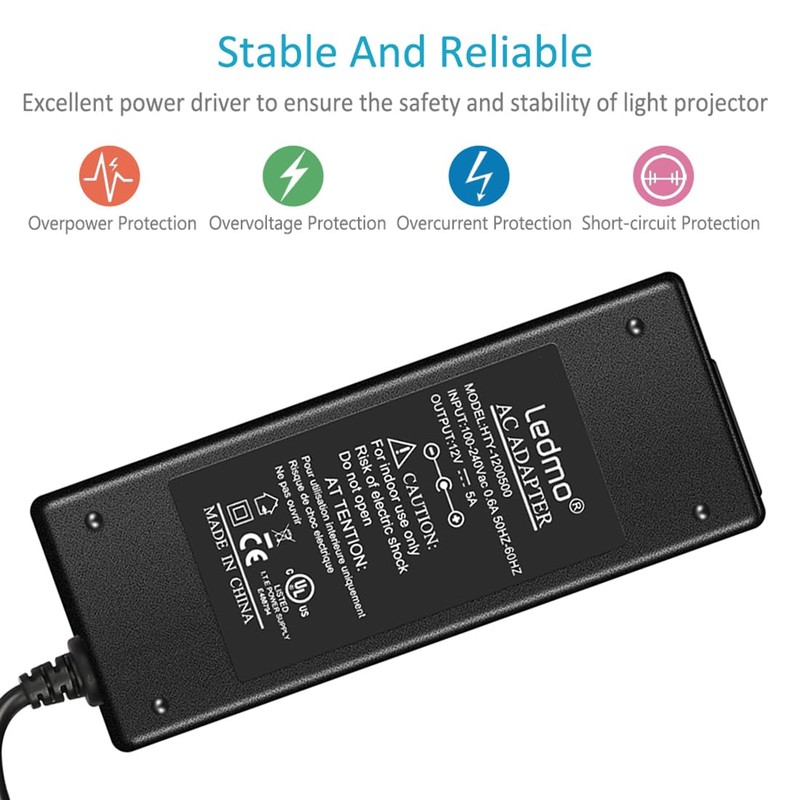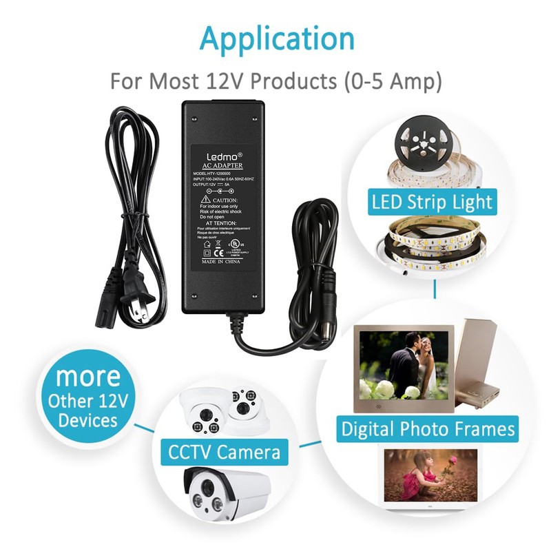 LEDMO Power Supply, Transformers,LED Adapter, 12V 5A 60 Watt Max AC 100-240V to DC 12V LED Driver for LED Strip Lights