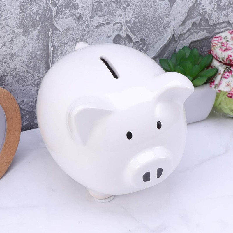 LEDMOMO Piggy Bank Cute Pig Coin Money Bank Funny Simple Ornament Mouth Opening White