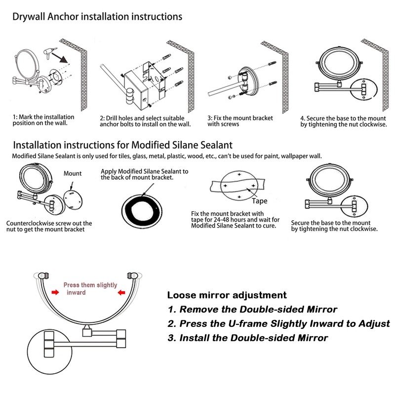 - Built to Last, Installed in Minutes: Rust-resistant brass rechargeable lighted makeup mirror with magnification wall mount withstands humidity. Includes screws & adhesive for tiles/marble/glass/metal/wood walls. Quick installation under minutes