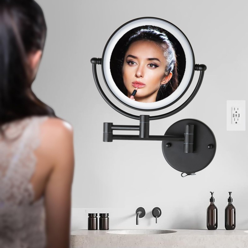- Pro-Grade Dual Mirrors, Precision Perfected: 8-inch magnifying mirror with light wall mount: 1x standard side for daily makeup, 10x magnified side (keep 4" distance avoid dizziness) for eyebrow/eyeliner detailing. Dual-zone LED ensures glare-free illumination