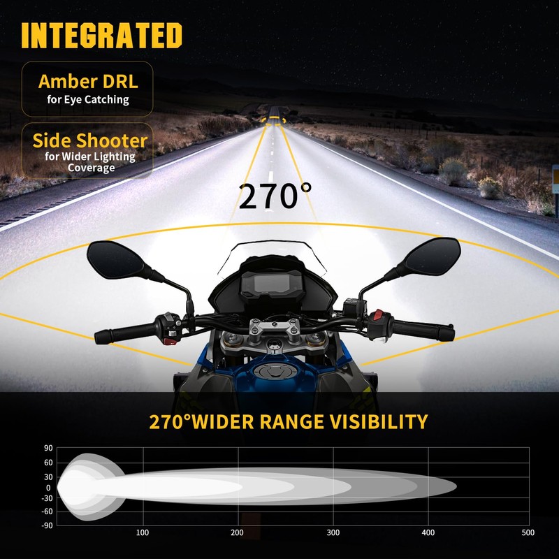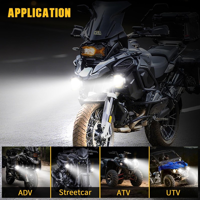 - 【Dual DRLs】V5 Led Motorcycle Fog Light Each Have Dual 3,200K Amber DRLs Reinforce Feature Designed, Not Only Works In Tandem With Ultra-Bright White Main Lights Combination Beam, Also Provide Bright & Eye Catching Enough,Remind Other Traffics Even Driving In Dense Foggy/Heavy Rain/Snow With The Brightness & Strong Penetration Ability, Ensuring Ride Safety In Any Conditions.