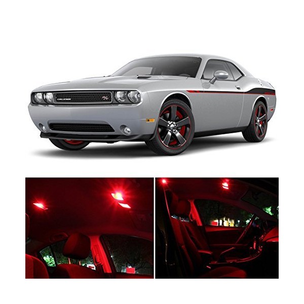 LEDpartsNow Interior LED Lights Replacement for 2008-2017 Dodge Challenger Accessories Package Kit (10 Bulbs), RED