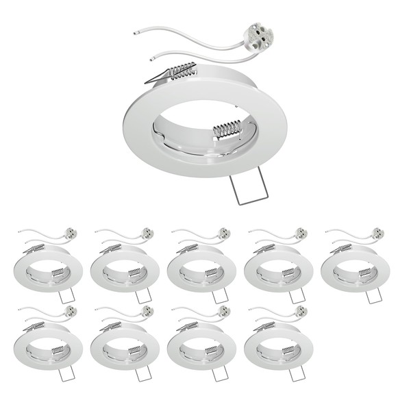 ledscom.de 10 Pieces Ceiling mounting Frame Fere, Round, White Glossy (LED/Halogen/MR16/50mm) incl. GU5.3 Socket