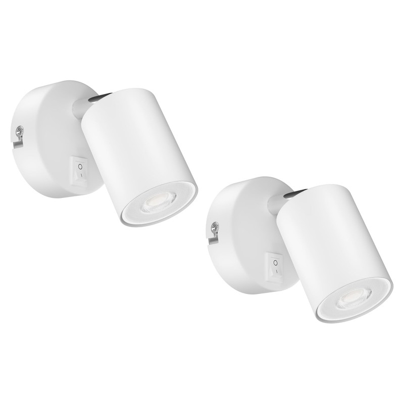 ledscom.de 2 Wall spot WAIKA, Single-Flame, with Switch, GU10, White matt, incl. 468lm LED GU10 lamp, Warm White
