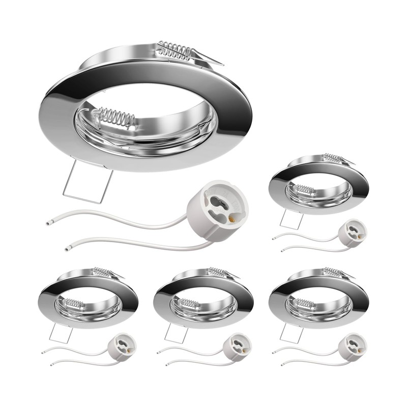 ledscom.de 5 pcs. recessed Ceiling Frame Fere, Round, Glossy Chrome (GU10/MR16/GU5.3/50mm) incl. GU10 Socket
