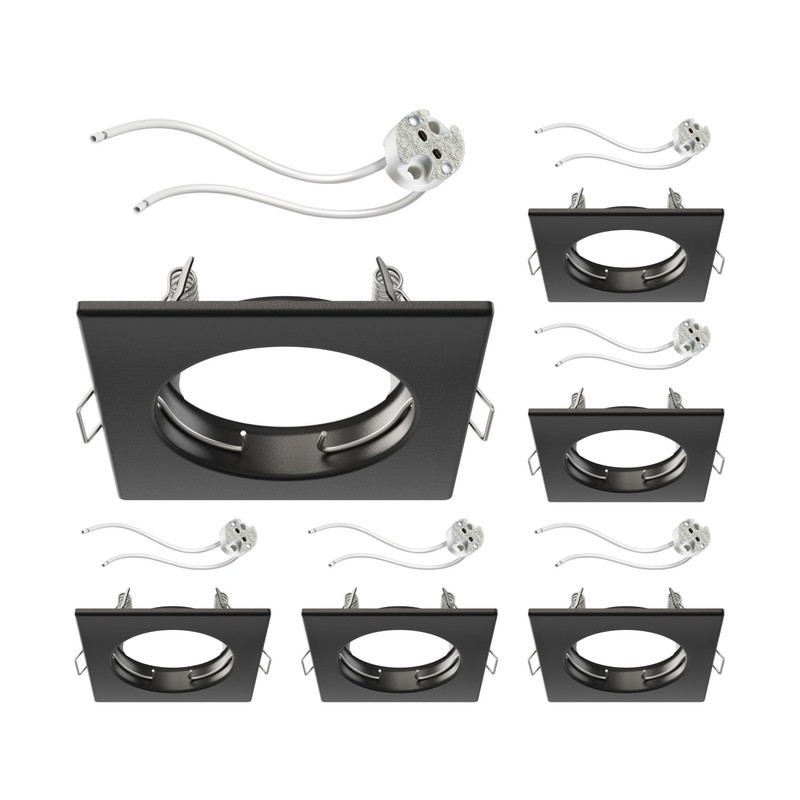 ledscom.de 6 pcs. recessed Ceiling Frame RIR recessed Frame Black matt Angular (LED/Halogen/MR16/50mm) incl. GU5.3 Socket
