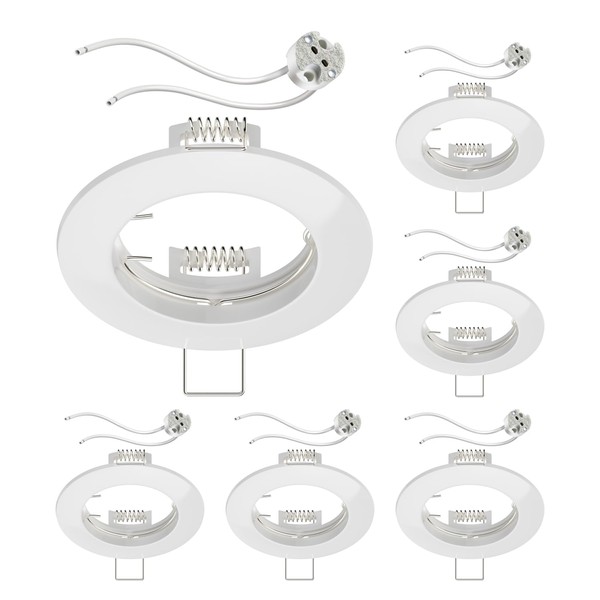 ledscom.de Circ Ceiling Mounting Frame Aluminium Mounting Frame White (LED/Halogen/MR16/50 mm) Including GU5.3 Socket Pack of 6