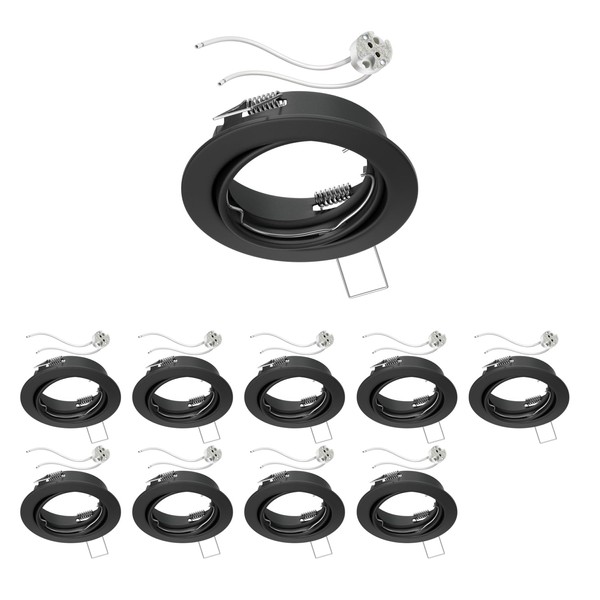 ledscom.de FERE Ceiling Mounting Frame Black Matt Swivelling (LED/Halogen/MR16/50 mm) Including GU5.3 Socket Pack of 10