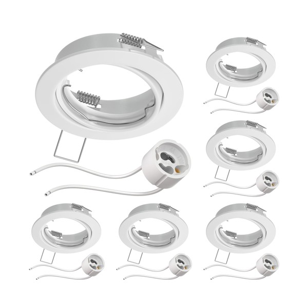 ledscom.de FERE Ceiling Mounting Frame White Matt Pivoting (LED/Halogen/GU10/MR16/PAR16/50 mm) Including GU10 Socket Pack of 6