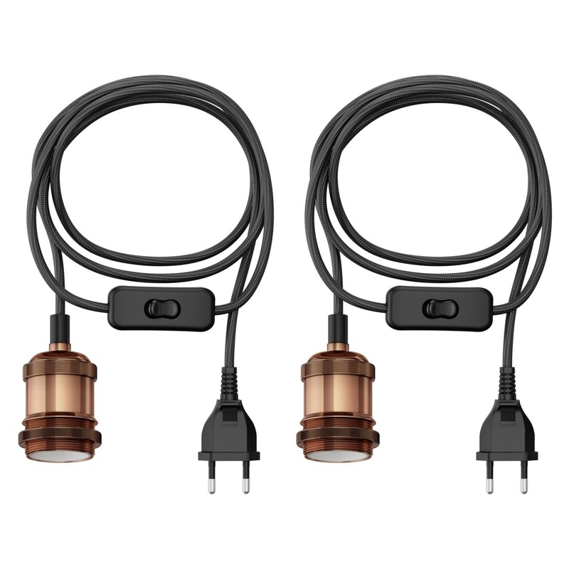 ledscom.de ledscom.de 2 pieces textile cable RETRA, plug, switch, bronze, 3 m, lamp socket, 1x E27 max. 60W