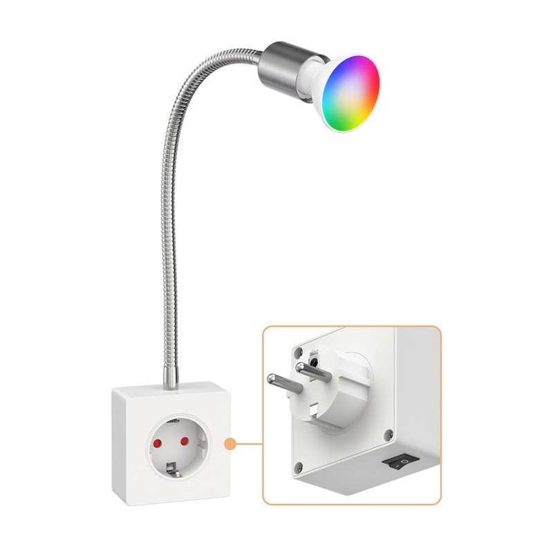 - Integrated Schuko socket: A unique feature of our light is the integrated Schuko socket. This greatly increases the functionality as you can illuminate and connect more devices or chargers at the same time. Perfect for rooms with limited outlets.