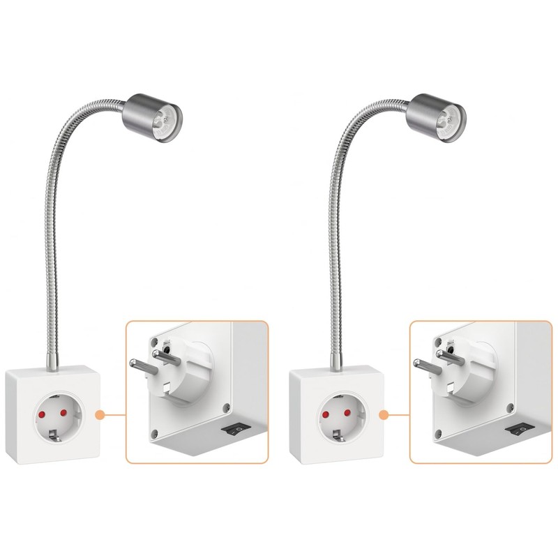 ledscom.de LESCH Socket Light / Reading Lamp Gooseneck Switch Chrome / White 1x GU10 Max. 10 W Pack of 2