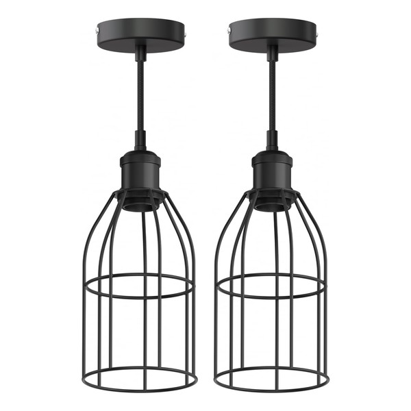 ledscom.de Retro Vintage Pendant Light Black E27 Socket Cage Shade 122 mm Diameter Pack of 2
