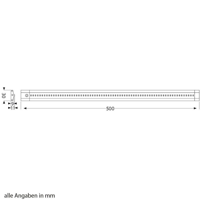 The extra flat design 500 x 9 x 30 mm and the simple design of the under-unit lamp allow a variety of uses. The light strip can be used as an under-unit light in the kitchen, as cabinet lighting, work light and as a workshop lamp.