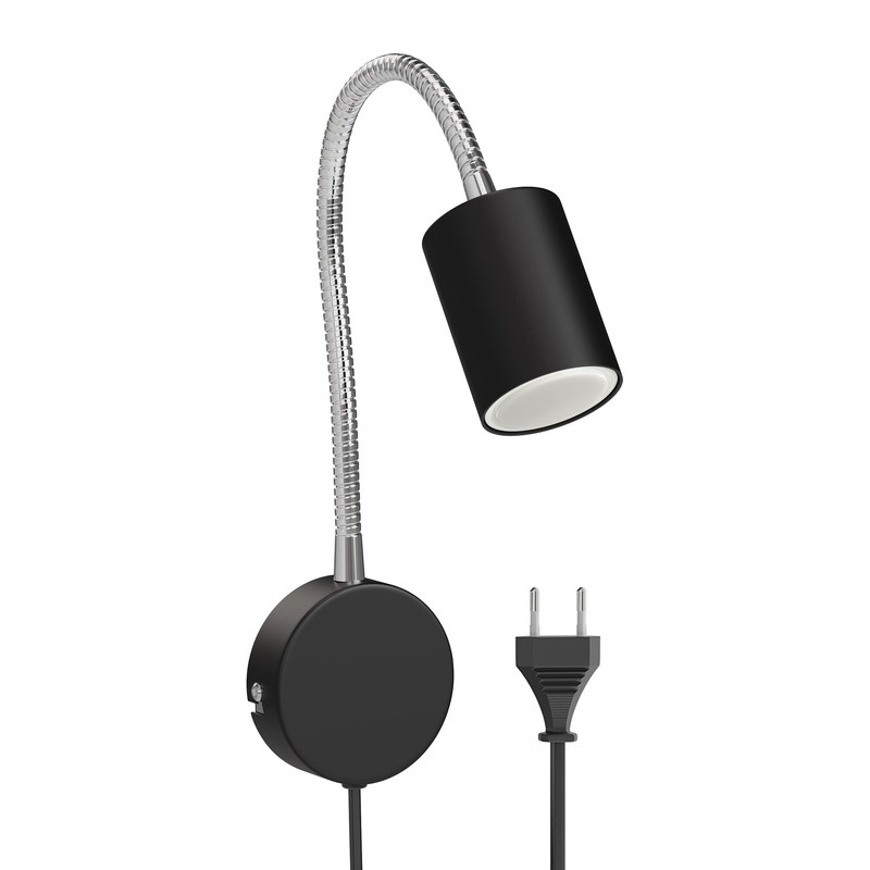 ledscom.de Waika Reading Light with Gooseneck Plug Switch Matte Black Includes 630 lm LED GU10 Lamp White