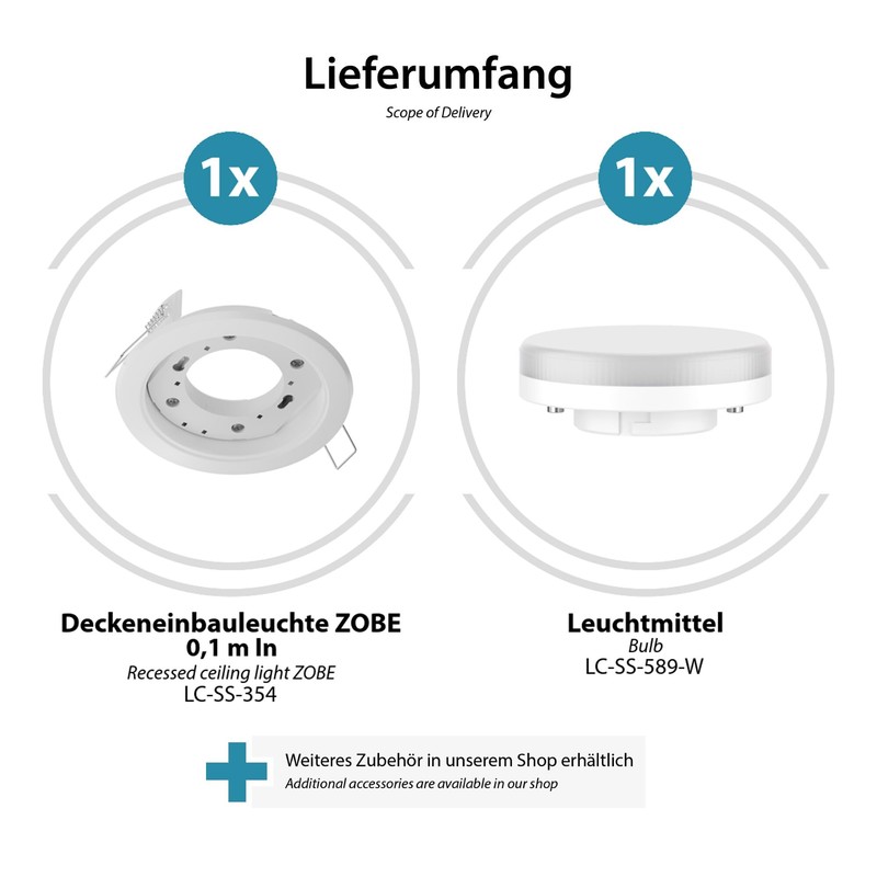 - Box contents: 2 sets consisting of: GX53 mounting frame, GX53 LED bulbs