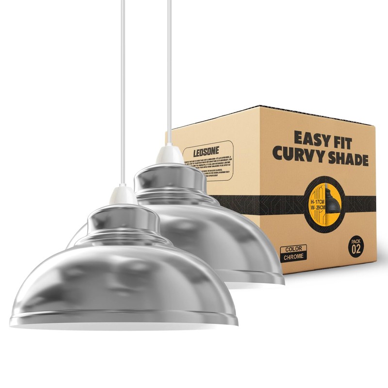LEDSone Metal Chrome Ceiling Lamp Shade 29cm Easy Fit Light Pendant Modern Ceiling Lighting Shade for Bedroom, Hallway, Office Industrial Kitchen Hanging Light Shade Ceiling Pendant