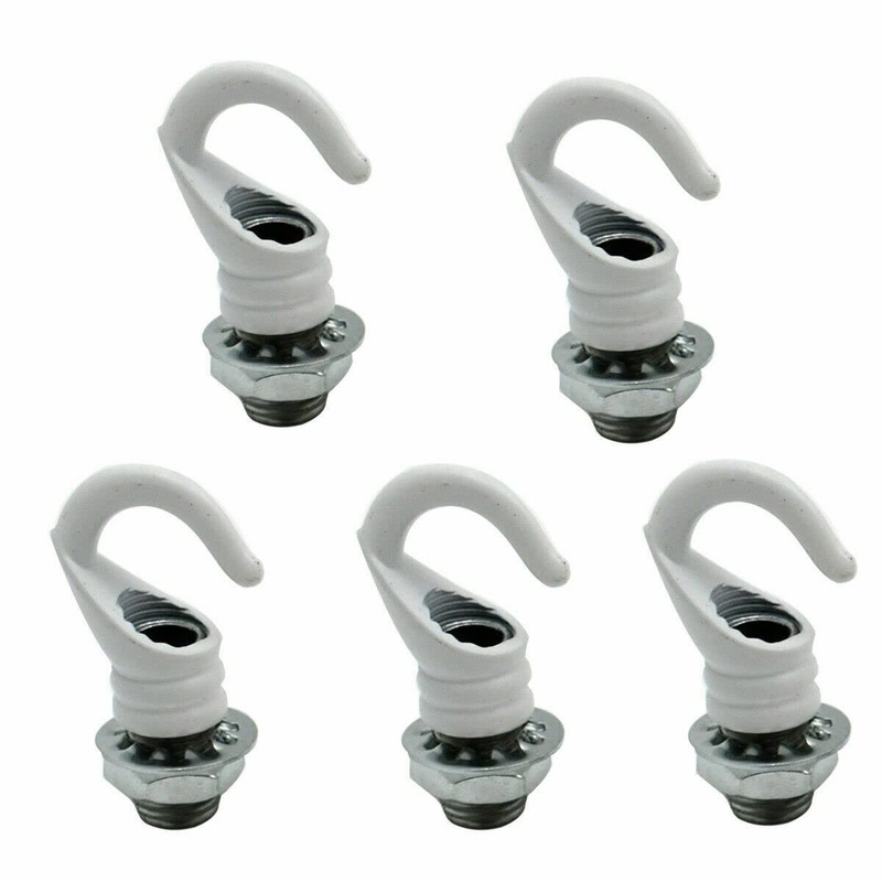 LEDSone Mini Ceiling Hook Antique Carving Safety Buckle Design Q-Hanger M10 Screw and Nut Hook Ring 10mm Cord Grip Mount Ceiling Rose Hooks (Hook, White) - 5 Pack