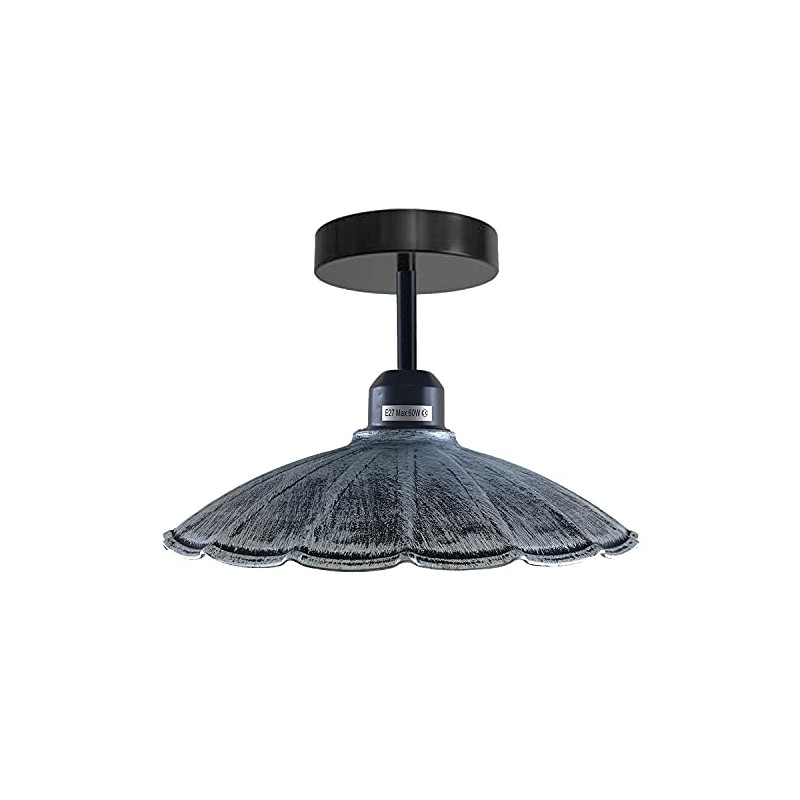 LEDSone Vintage Industrial Retro Flush Mount Metal Ceiling Light with Brushed Silver Lamp Shade