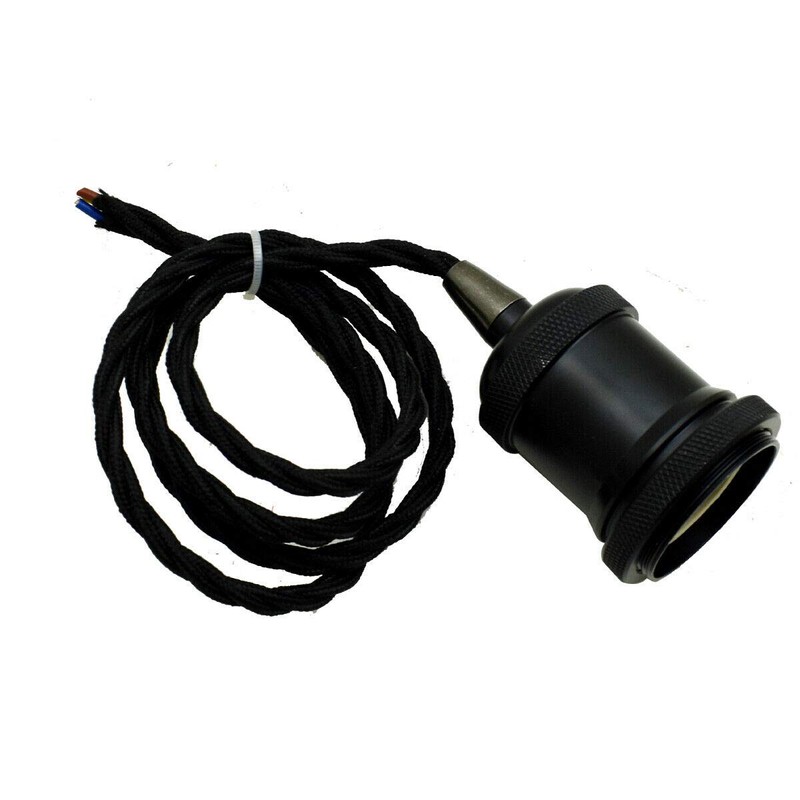 LEDSone Vintage Pendant Light Fitting,Industrial Ceiling Rose,Black, 1m Pendant Light, Braided Flex E27 Lamp Holder,Suspended Ceiling Pendant Light Fitting, 2 PACK
