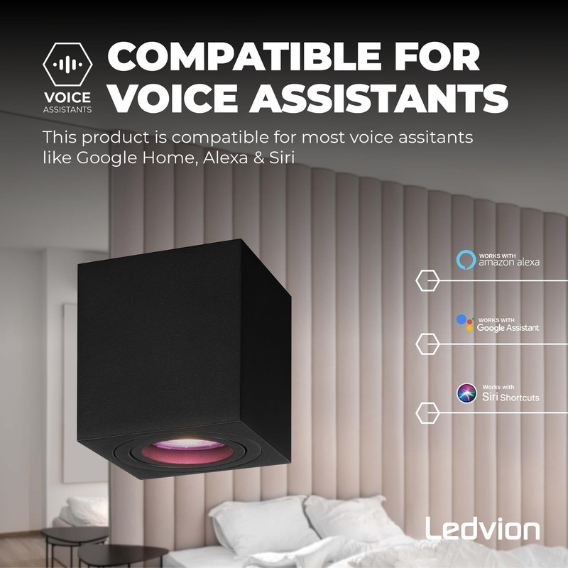 Ledvion - LED surface-mounted spotlights, square RGB, dimmable, 4.9 W, RGB+CCT, black, ceiling light