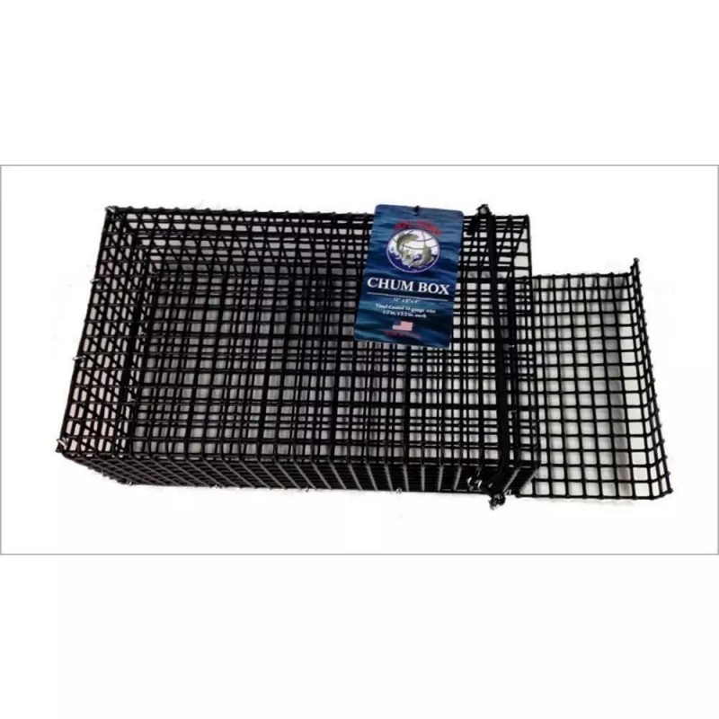 Heavy duty black vinyl coated wire box. Perfectly sized for chumming with frozen, fresh or dry bait.