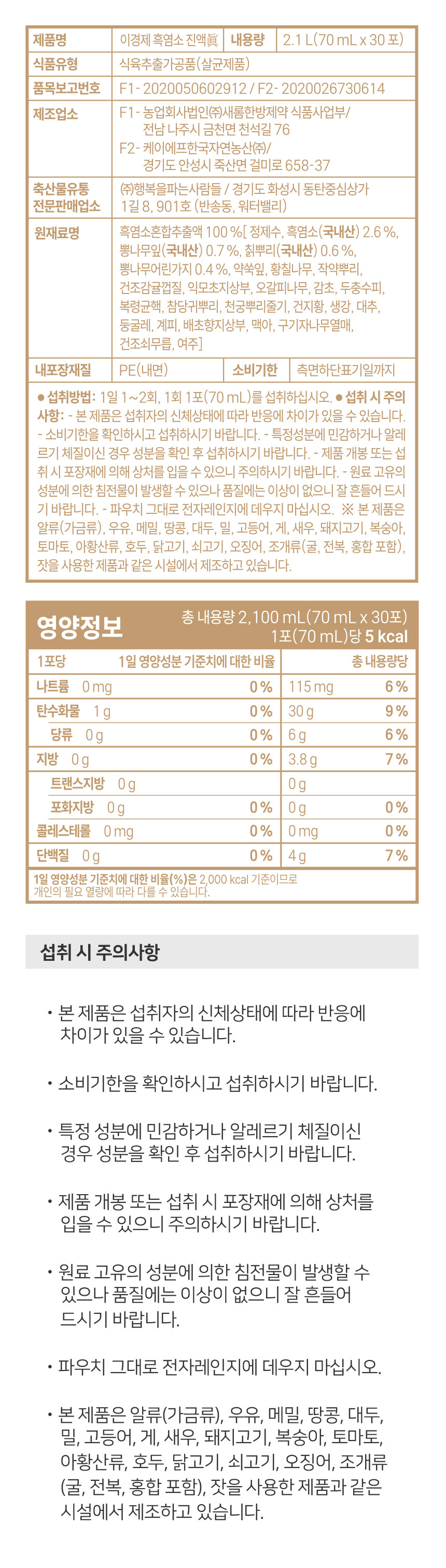 Lee Gyeong-kyeong Black Goat Essence Gin 70ml 60 packets (2 boxes)
