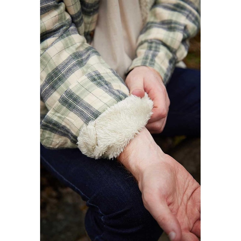 Lee Valley, Ireland Men’s Flannel Fleece Lined Shirt Jacket Plaid Tartan Longsleeve, 100% Cotton (US, Alpha, X-Large, Regular, Regular, Ecru Green Navy Check)