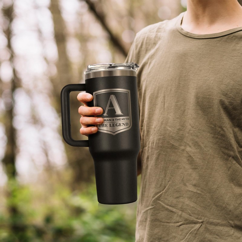 leebbsin Gifts for Men, Initial 40oz Tumbler with handle and straw, Personalized Birthday Gifts for Men, Him, Dad, Grandpa, Husband, Monogrammed The Man The Myth The Legend Cup for Coffee, Tea (J)